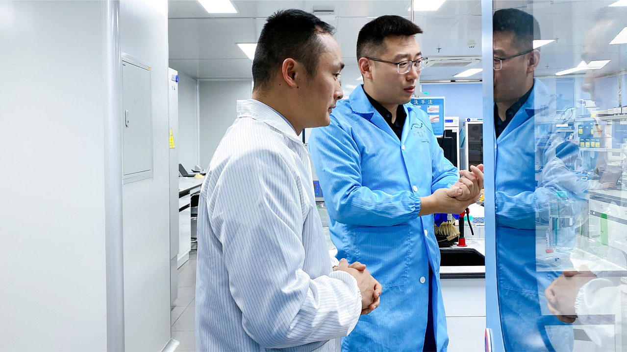 沈瀟博士熱忱接待了張光南教授,并詳細介紹了漢騰生物的發(fā)展歷程及服務內容。漢騰生物是一家國際化運營的生物藥CRDMSO公司,作為粵港澳大灣區(qū)領軍生物技術企業(yè),致力于為中國及全球生物藥及生物技術公司提供符合國際監(jiān)管標準、覆蓋從早期發(fā)現到商業(yè)化的一站式服務。多年來,漢騰生物非常重視科技創(chuàng)新能力,目前已累計超百項自主知識產權并擁有多樣化的技術平臺,包括了生物藥CMC一站式開發(fā)平臺、原液及商業(yè)化制劑灌裝生產平臺以及臨床供應服務平臺等。