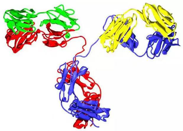 抗體是一種高分子球狀血液蛋白質(zhì),重量約為150kDa。由于在部分氨基酸殘基中含有糖鏈,抗體也是一種糖蛋白。能發(fā)揮功能的基本單位是一個(gè)免疫球蛋白單體。在分泌形態(tài)的抗體中包括:二聚體IgA、真骨附類魚的四聚體IgM以及哺乳動(dòng)物的五聚體IgM。