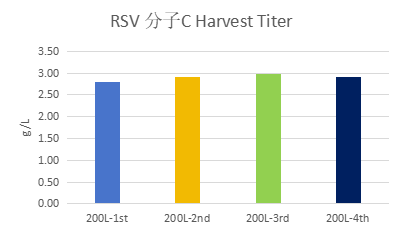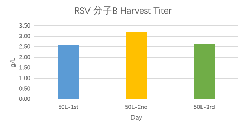 RSV分子A的5個批次的表達量均在2g/L左右,RSV分子B的表達量最高可達3.2g/L左右。